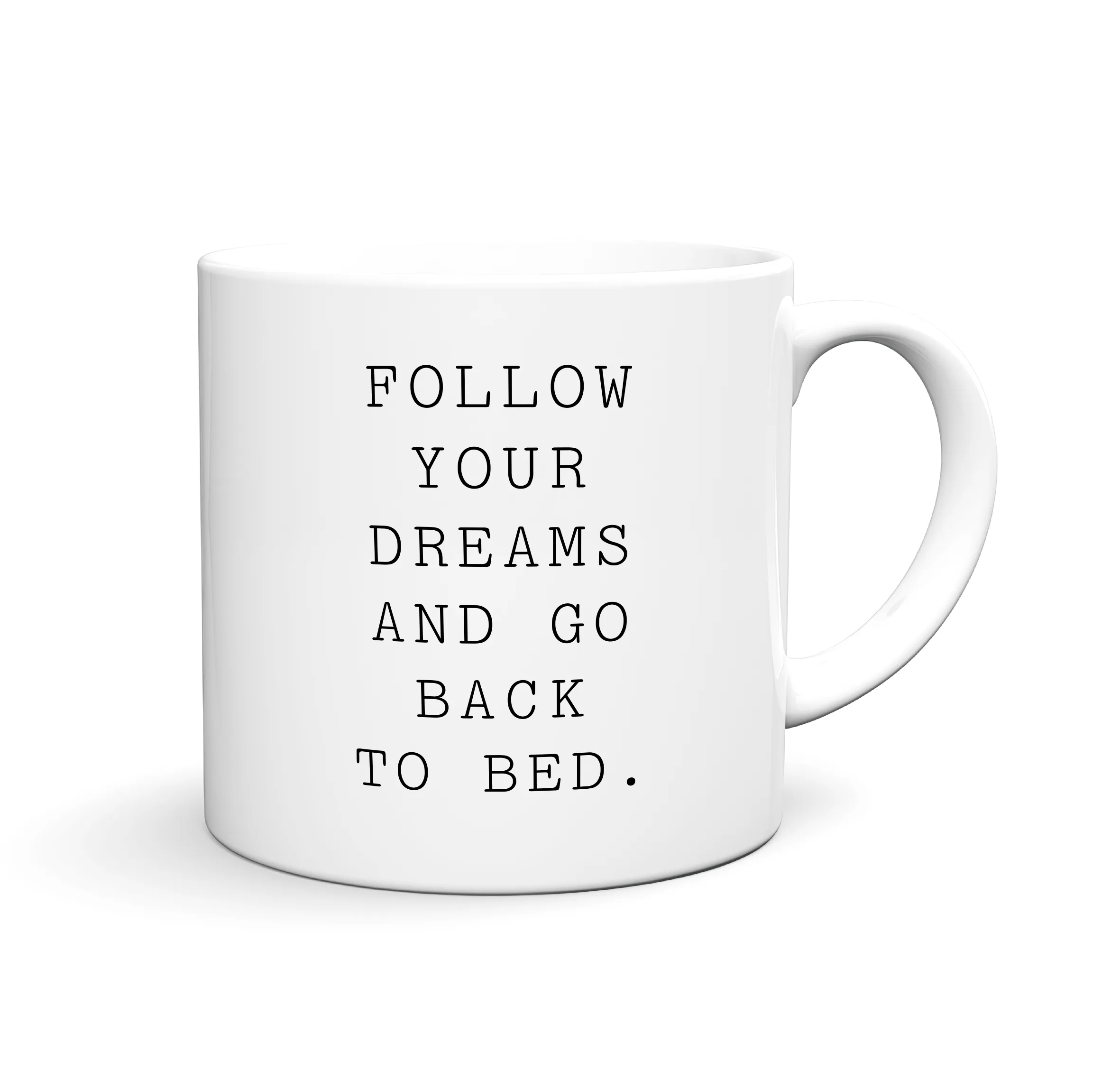 Razveselite svoje najbližje z zabavnim motivom FOLLOW YOUR DREAMS AND GO BACK TO BED…Natisnemo ga lahko na katerikoli izbran izdelek keramične in emajlirane skodelice, termo steklenice za vodo, hranilnike ali šparovčke… in dodamo želeno ime. Motiv je natisnjen na skodelico ali na levi in desni strani, vrčku na sredini, steklenicah pa spredaj in zadaj.
