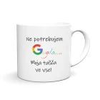 Razveselite svoje najbližje z zabavnim in veselim motivom NE POTREBUJEM GUGLA MOJA ŽENA, MOŽ, TAŠČA, TAST, BRAT, SESTRA, STRIC, TETA, SVAK, SVAKINJA, … VE VSE Natisnemo ga lahko na katerikoli izbran izdelek keramične in emajlirane skodelice, termo steklenice za vodo, hranilnike ali šparovčke… in dodamo želeno ime. Motiv je natisnjen na skodelico na levi in desni strani, vrčku na sredini, steklenicah pa spredaj in zadaj.
