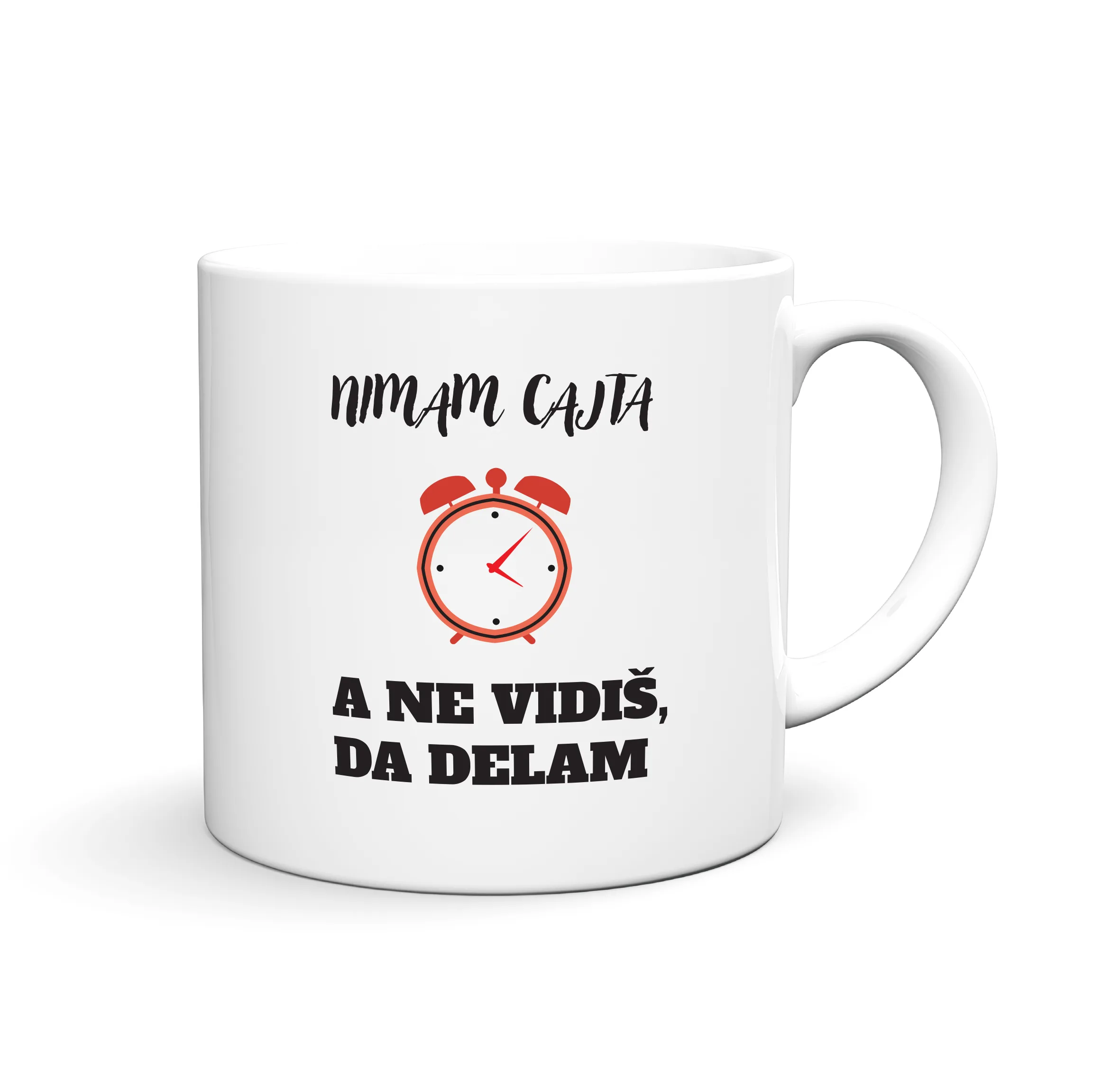 Razveselite svoje najbližje z zabavnim motivom NIMAM CAJTA A NE VIDIŠ DA DELAM Natisnemo ga lahko na katerikoli izbran izdelek keramične in emajlirane skodelice, termo steklenice za vodo, hranilnike ali šparovčke… in dodamo želeno ime. Motiv je natisnjen na skodelico ali na levi in desni strani, vrčku na sredini, steklenicah pa spredaj in zadaj.