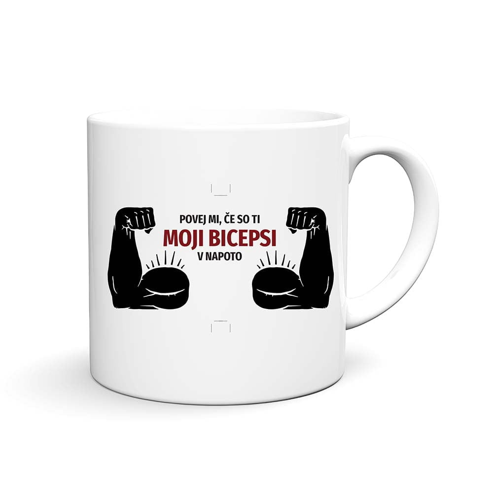 Razveselite svoje najbližje z zabavnim in veselim motivom POVEJ MI, ČE SO TI MOJI BICEPSI V NAPOTO. Natisnemo ga lahko na katerikoli izbran Smeško izdelek: keramične in emajlirane skodelice, termo steklenice za vodo, hranilnike ali šparovčke… in dodamo želeno ime.
