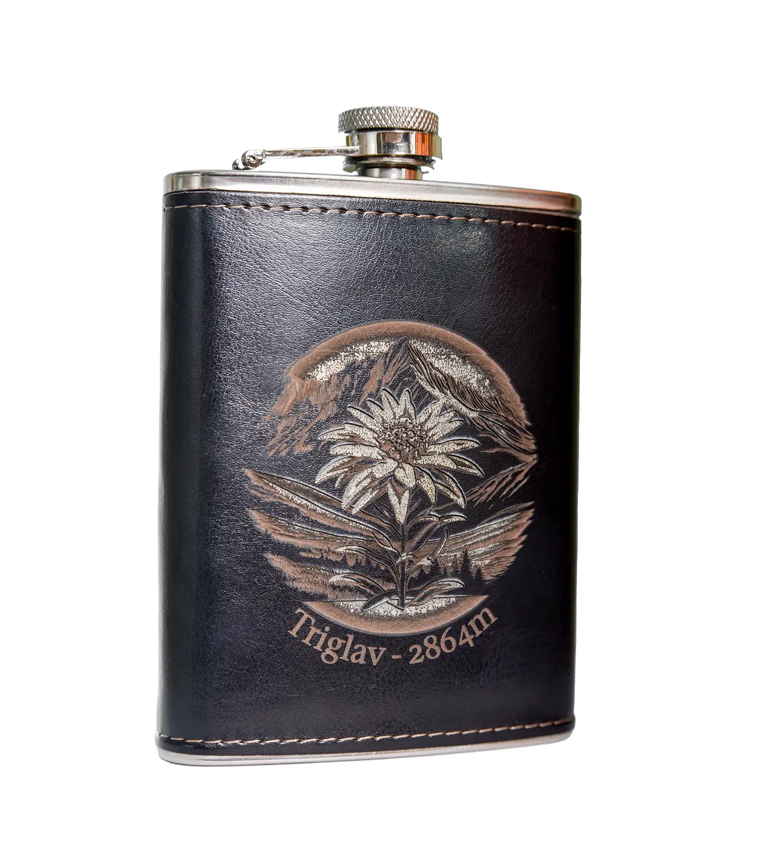 Za tiste trenutke, ko te ne greje sonce, temveč kapljica poguma. 🥃 Ta črna usnjena prisrčnica z vgraviranim motivom planike, Triglava in napisom Triglav – 2864 m je popolno darilo za ljubitelje gora z drzno dušo. Elegantna, robustna in pripravljena na avanturo – tudi če ne vodi čisto do vrha. 😎