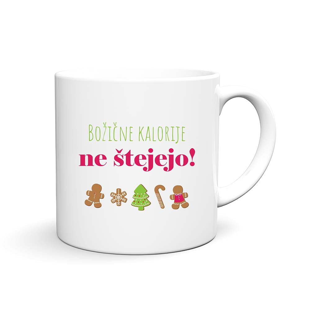 Razveselite svoje najbližje z zabavnim in božičnim motivom BOŽIČNE KALORIJE NE ŠTEJEJO! Natisnemo ga lahko na katerikoli izbran Smeško izdelek: keramične in emajlirane skodelice, termo steklenice za vodo, hranilnike ali šparovčke… in dodamo želeno ime.