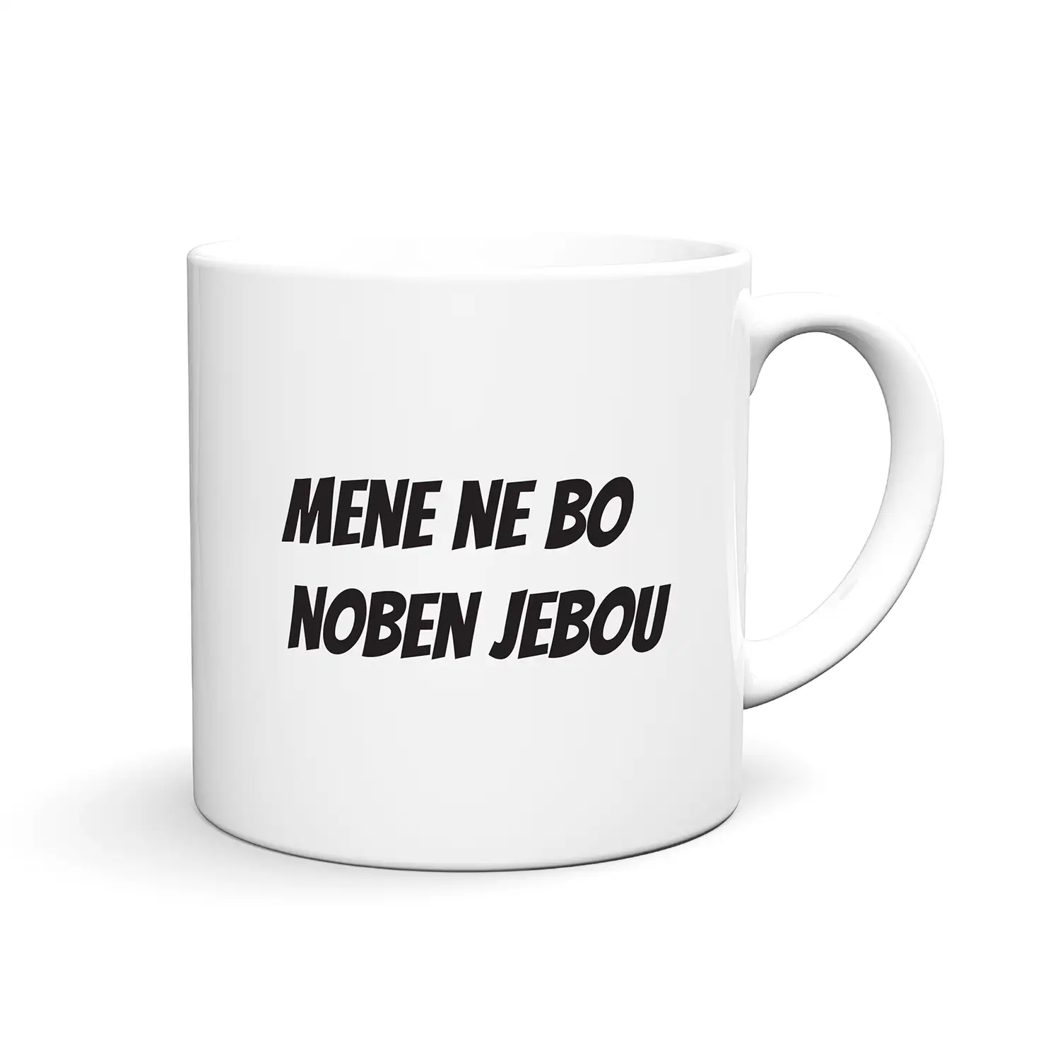 Razveselite svoje najbližje z zabavnim motivom MENE NE BO NOBEN JEBOU…Natisnemo ga lahko na katerikoli izbran izdelek keramične in emajlirane skodelice, termo steklenice za vodo, hranilnike ali šparovčke… in dodamo želeno ime. Motiv je natisnjen na skodelico ali na levi in desni strani, vrčku na sredini, steklenicah pa spredaj in zadaj.